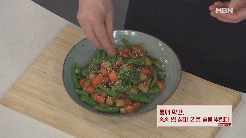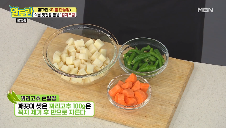 ▶식용유 1컵 ▶감자 600g ▶당근 200g ▶여름 맛간장 2컵 ▶꽈리고추 100g ▶참기름 2큰술 ▶통깨 약간 ▶송송 썬 실파 2 큰술