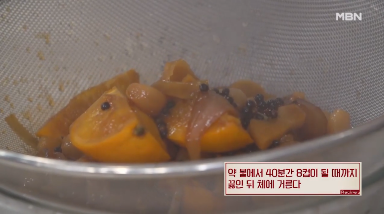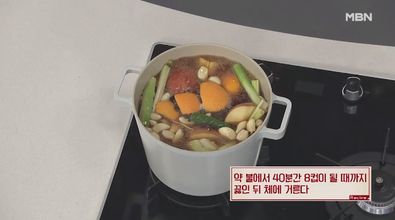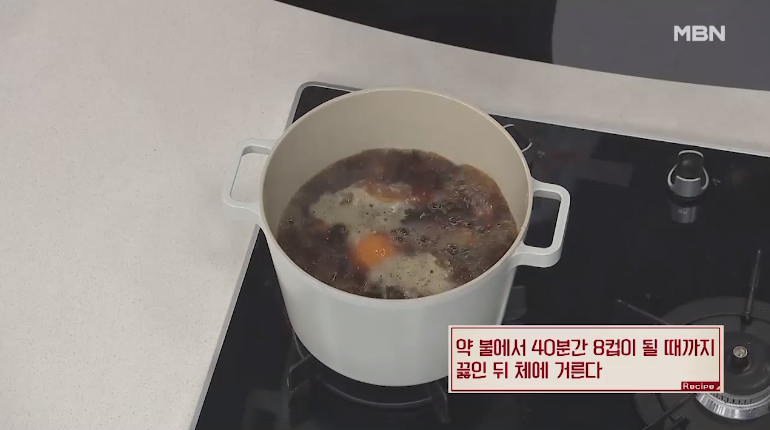 3. 약 불에서 40분간 8컵이 될때까지 끓입니다.