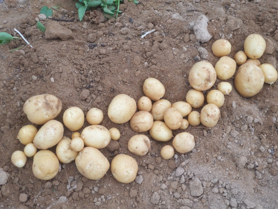 따라서 감자 수확 시 주의할 점은 껍질이 벗겨지거나, 잘라지거나, 금이 가거나, 부딪쳐서 상처가 나는 등의 덩이줄기 손상을 최소한으로 줄이는 것이라고 보시면 돼요.