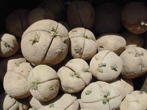 또는 바람이 잘 통하는 상자에 담아 2~3단씩 엇갈리게 쌓는 방법도 있는데 이 경우에는 햇빛을 골고루 받을 수 있도록 2~3일에 한번씩 위치를 바꿔주어야 합니다. 싹 길이는 1㎝ 내외가 알맞다고 보시면 돼요.
