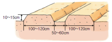 - 베드폭은 100~120㎝, 통로를 50~60㎝로 하며 베드의 높이는 10~15㎝로 합니다.