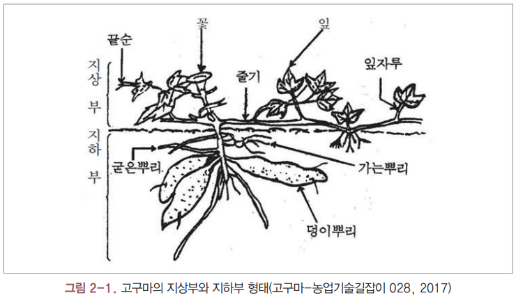 고구마의 생육적온은 25~30℃로 대표적인 열대작물로 기온이 30~35℃일 때 생육이 가장 왕성합니다.