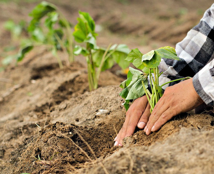 고구마 묘를 아주심기 한 후, 묘가 시들거나 죽은 경우에는 바로바로 새로운 묘를 보식해주는 것이 좋으며 고구마의 생육 초기인 40일에서 60일까지, 고구마의 덩굴이 두둑을 덮기 전까지는 잡초를 꾸준히 제거해주는 것이 좋습니다. 더불어 토양의 수분이 부족하지 않게 관리해주어야 하는데요, 특히 아주심기하는 기간이 봄가뭄이 자주 발생하는 기간이므로 물관리에 신경 써주는 것 잊지 마세요.