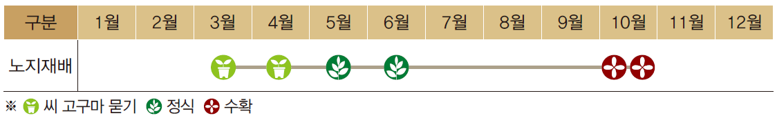 ● 씨고구마 묻는 시기 : 3월 중순 ~ 4월 상순