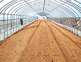 먼저 밑거름을 준 땅에 높이 25cm∼30cm, 너비 70cm∼75cm의 이랑을 만듭니다. 이후 잡초 관리 및 보온, 보습 효과를 위해 비닐을 씌워줍니다.