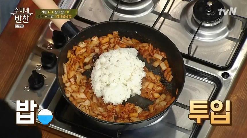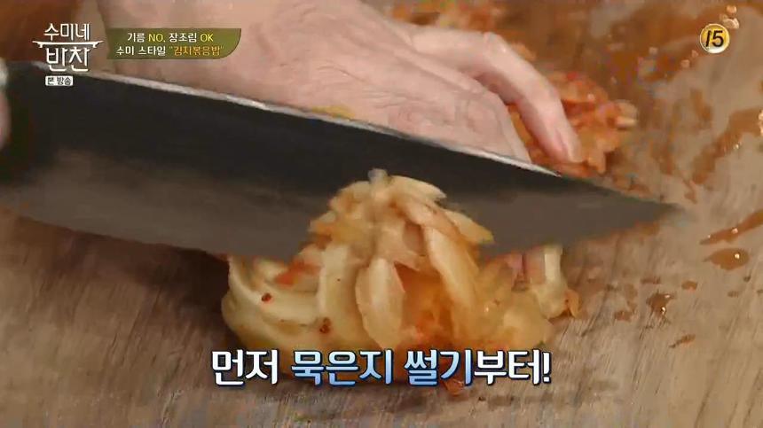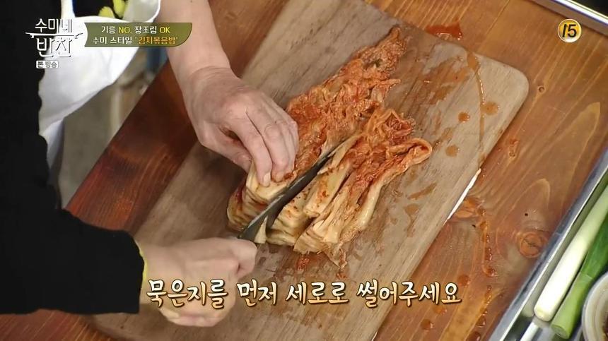 오늘 소개할 김치볶음밥 맛있게 만드는법의 또 한가지 특이한 점은 묵은지를 넣고 볶을 때 기름을 넣지 않는다는 것이예요. 기름 대신 묵은지 국물을 넣는다고 하네요.