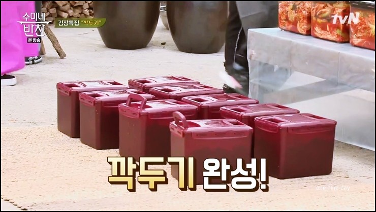 깍두기가 익으면 무에서 물이 나오기 때문에 약간 짜게 만들어 주는 것이 좋다고 하네요. 또한 깍두기가 익으면서 가스가 나와 부풀어 오르기 때문에 꽉 채우지 말고 담아 주세요. 이렇게 마지막으로 미리 썰어둔 쪽파를 넣으면 깍두기 맛있게 담는법 황금레시피가 완성됩니다.