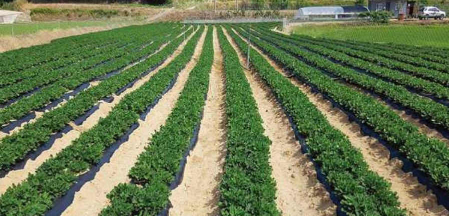 두둑은 70cm, 고랑은 30cm로 하고 포기간격은 20cm로 하면 3줄 재배할 수 있습니다.