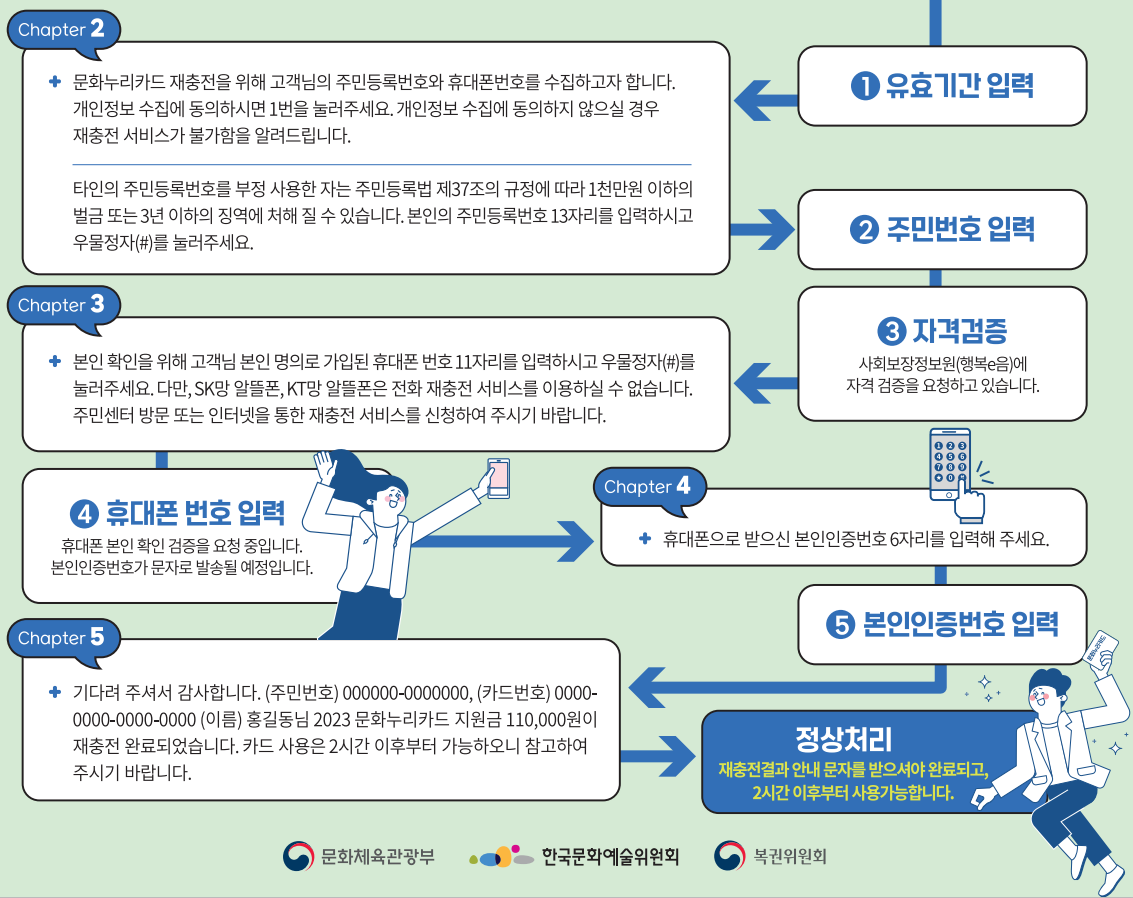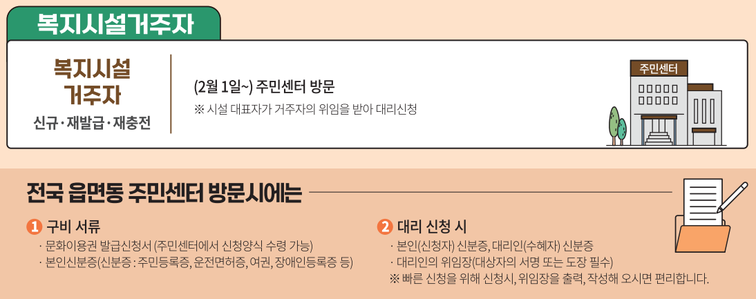 - 2023.2.1(수) 전국 주민센터, 문화누리카드 누리집, 모바일 앱, 전화(ARS) 재충전 발급 개시