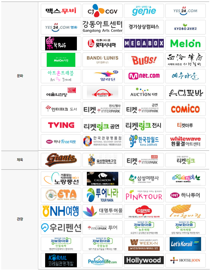 참고로 문화누리카드 사용처 중 대표적인 곳들은 다음과 같습니다. 다만 문화누리카드 사용처 상황은 매년 바뀔 수 있으니 꼭 사용 전 확인하시기를 바랍니다.