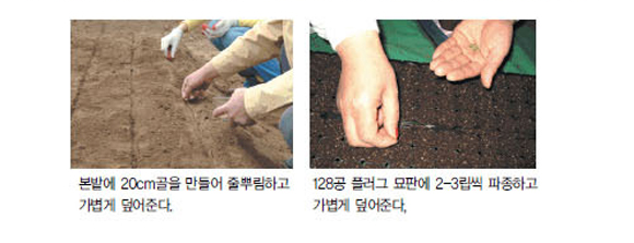 1~2주 전에 1㎡당 2㎏의 완숙퇴비와 깻묵을 2컵(400g) 정도 넣고 밭을 일구어 이랑 폭이 1m, 높이가 10cm 정도 되게 준비해야 합니다. 이때 이랑의 폭은 밭의 형편에 따라 적당하게 해야 하며 물 빠짐이 좋은 밭은 두둑을 낮게 합니다. 습기가 많은 밭은 두둑을 높여 습해를 받지 않게 해주세요.