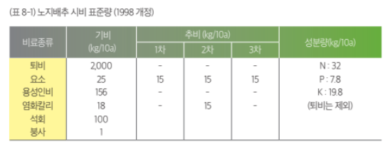 가을 파종재배의 경우에 결구적온인 평균기온이 15℃ 되는 때부터 33일 전에 파종하는 것이 좋습니다.(8월 25일경)