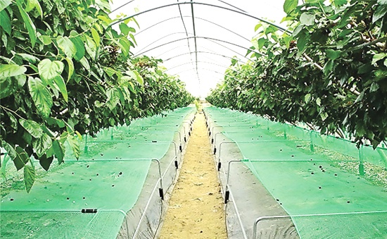 오디 수확장치는 낮추만들기 뽕밭에서 적용할 수 있는 기술이기 때문에 나무를 중간만들기 이상으로 크게 재배할 경우에는 사용하기 어려운 수확방법입니다. 따라서 오디가 낙하 충격으로 상하지 않도록 바닥에 볏짚 등을 깔고 비닐이나 그물을 쳐서 수확하는 방법이 있을 수 있는데요, 뽕밭에 파이프를 박아두고 빛 가림망을 설치하여 수확하기도 합니다.