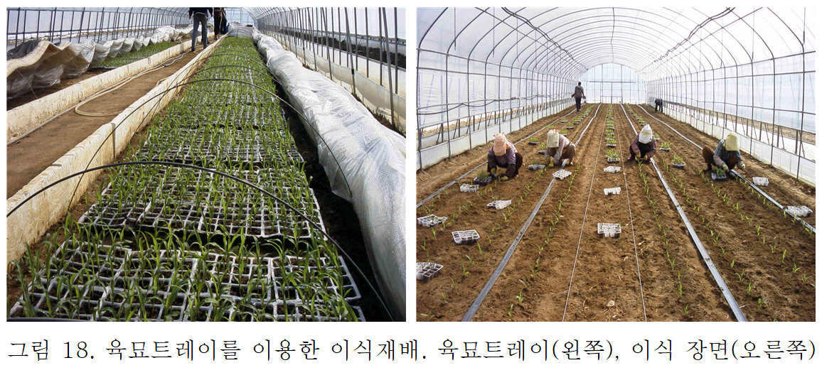 대개 벼농사 앞그루로 논에 비닐하우스를 설치하여 재배하거나 밭에 비닐하우스를 설치하여 육묘, 이식재배하는 것입니다.
