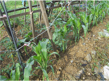 옥수수의 파종은 보통 70cm 이랑 폭에 25cm 간격으로 2알씩 심으면 됩니다. 이후 키가 15cm 정도 자라면 1포기만 남기고 솎아주어 튼튼하게 해주고 약 50cm 정도 자랐을 때 잎이 약간 연노란색이 되었는지 살펴봅니다. 이는 비료가 부족한 증상으로 이때 원예용 복합비료(18-18-19)를 약간 (1~2cm 간격에 작은 알갱이 1개정도) 흩어 뿌려 줍니다.