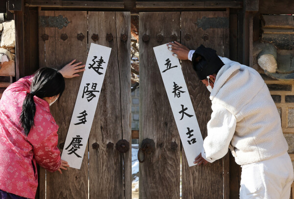 국립민속박물관에서도 '입춘'(立春)을 맞아 다음 달 2~4일 세시 행사를 여는데, 2월 2일 박물관을 찾으면 입춘첩을 쓰고 대문에 붙이는 모습을 볼 수 있습니다. 박물관 내 오촌댁 대청마루에서 서예가가 길운과 복을 기원하는 글귀를 쓰고 대문에 붙이며 한 해의 복을 기원하는 시연 행사가 열립니다.