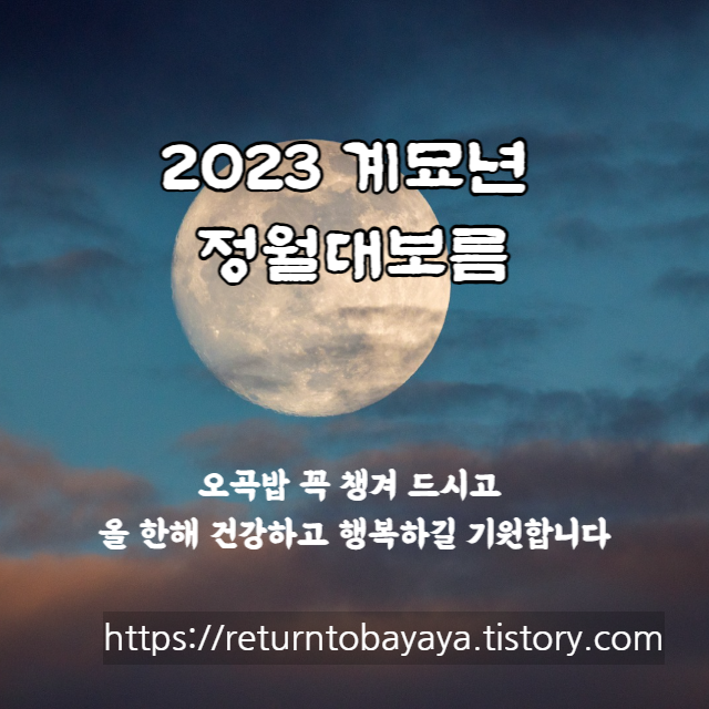 2023년도 벌써 정월대보름을 맞았습니다. 맛난 오곡밥에 갖가지 나물 반찬들을 먹게 되니 우리 조상님들의 지혜가 느껴집니다. 가족들과 소중한 사랑을 나누세요.