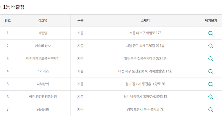 ▲태전강북로또복권판매점(대구 북구 칠곡중앙대로 273 1층)
