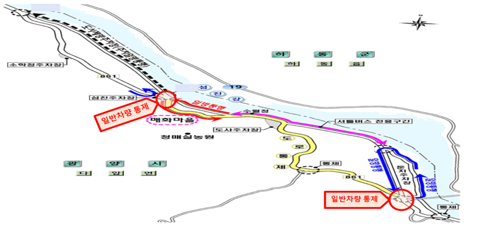 ● 운행노선 : 다압면 둔치 주차장 ↔ 매화축제 행사장(왕복)