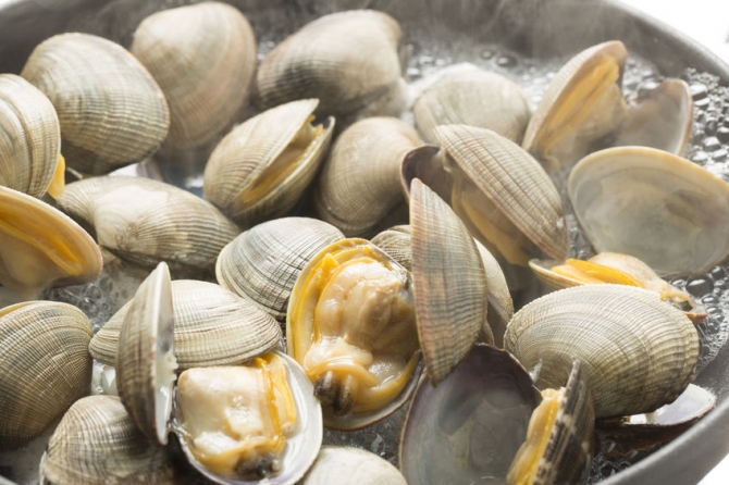 진한 국물맛을 내기로 유명한 바지락은 빈혈에 효과가 좋은 철을 함유하고 있습니다. 게다가 칼로리와 지방함량도 낮아 다이어트 음식으로도 좋고 단백질과 타우린이 풍부해 혈액순환과 신진대사를 촉진시킨다고 해요. 바지락은 된장과 함께 먹으면 된장이 바지락에 부족한 식물성 단백질을 보충해 주기 때문에 더욱 좋다고 하네요,