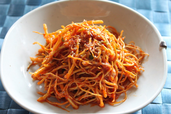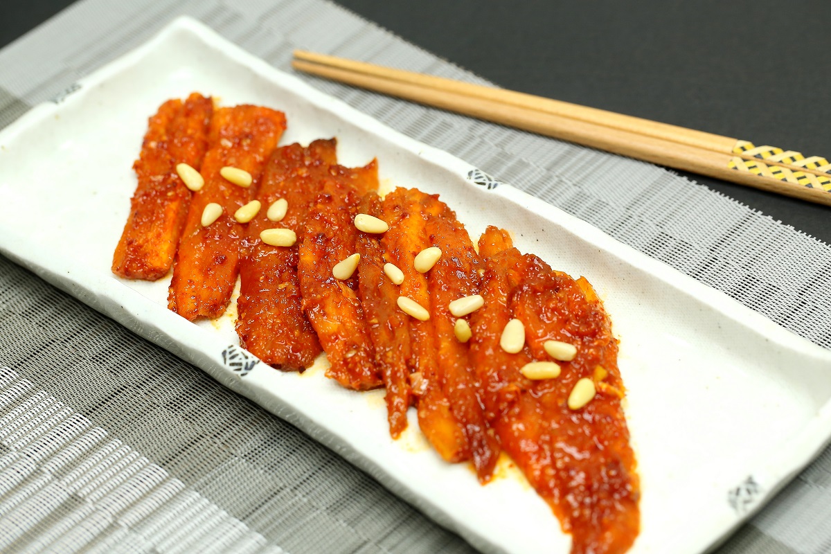 3월 제철음식 더덕은 식이섬유와 무기질이 풍부하며 사포닌이라는 물질의 특성 때문에 진액과 쓴맛이 나는데요, 사포닌은 혈액순환과 정력증강의 효과가 있는 것으로 유명합니다. 또 원기회복과 가래 해소에도 좋다고 해요. 더덕은 검은깨와 함께 먹는 것이 궁합이 좋다고 하는데요, 더덕구이, 더덕 장아찌, 더덕무침으로 해먹습니다.