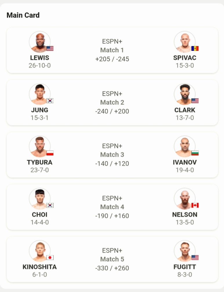 [헤비급] 데릭 루이스 (265) vs 세르게이 스피박 (255.5)