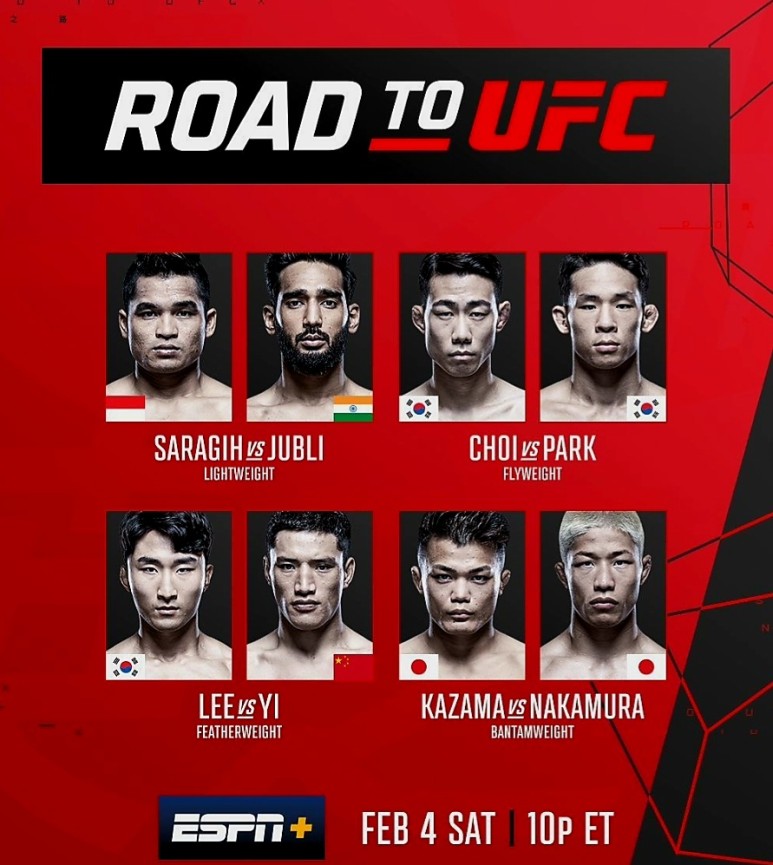 ROAD TO UFC에는 7명의 한국선수들이 출전하기 때문에 많은 기대를 모으고 있는 상황입니다. ROAD TO UFC는 아시아 정상급 MMA 유망주들이 참가하는 8강 토너먼트로 이 대회 우승자는 UFC와 계약을 하게 됩니다. 플라이급, 밴텀급, 페더급, 라이트급 4개 체급에서 총 32명으로 시작한 대회는 이제 최종 결승에 출전하는 8인만 남아 있는데요, UFC 경기일정 중계 한국선수 명단을 자세히 정리해보도록 하겠습니다.