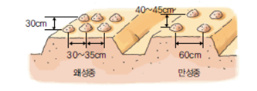 · 만성종 : 60㎝ 폭으로 2열, 주간 40~45㎝