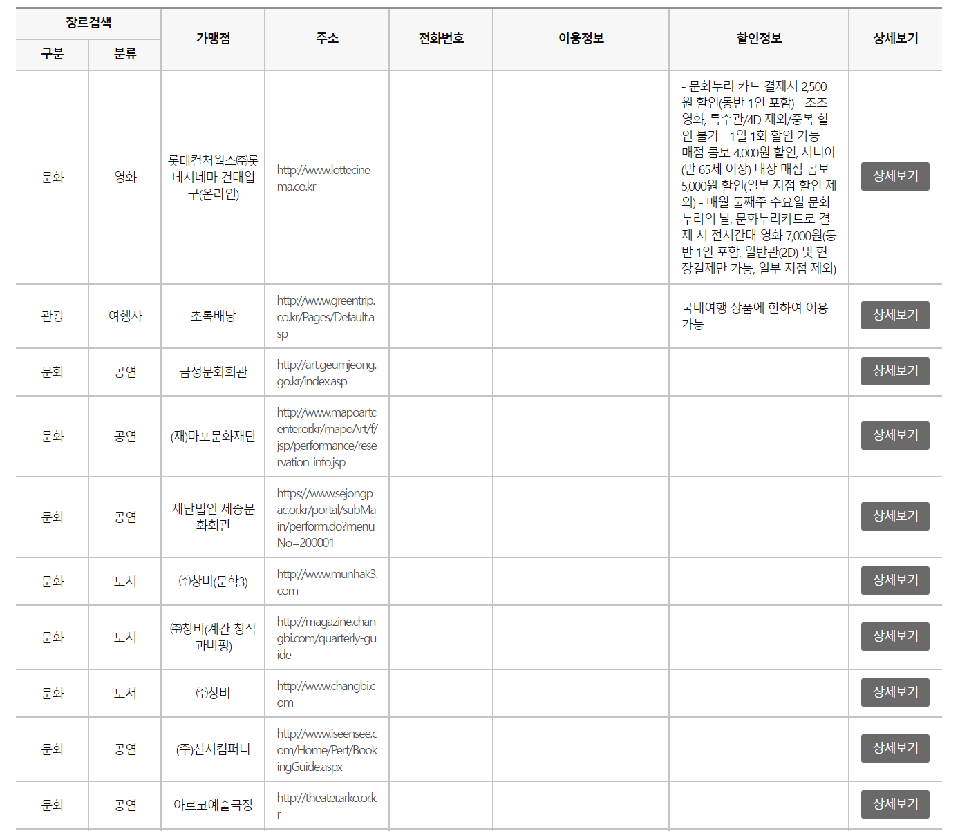문화누리카드 사용처 온라인의 경우도 마찬가지 방식으로 확인을 하실 수 있습니다.