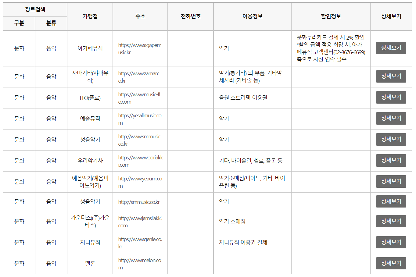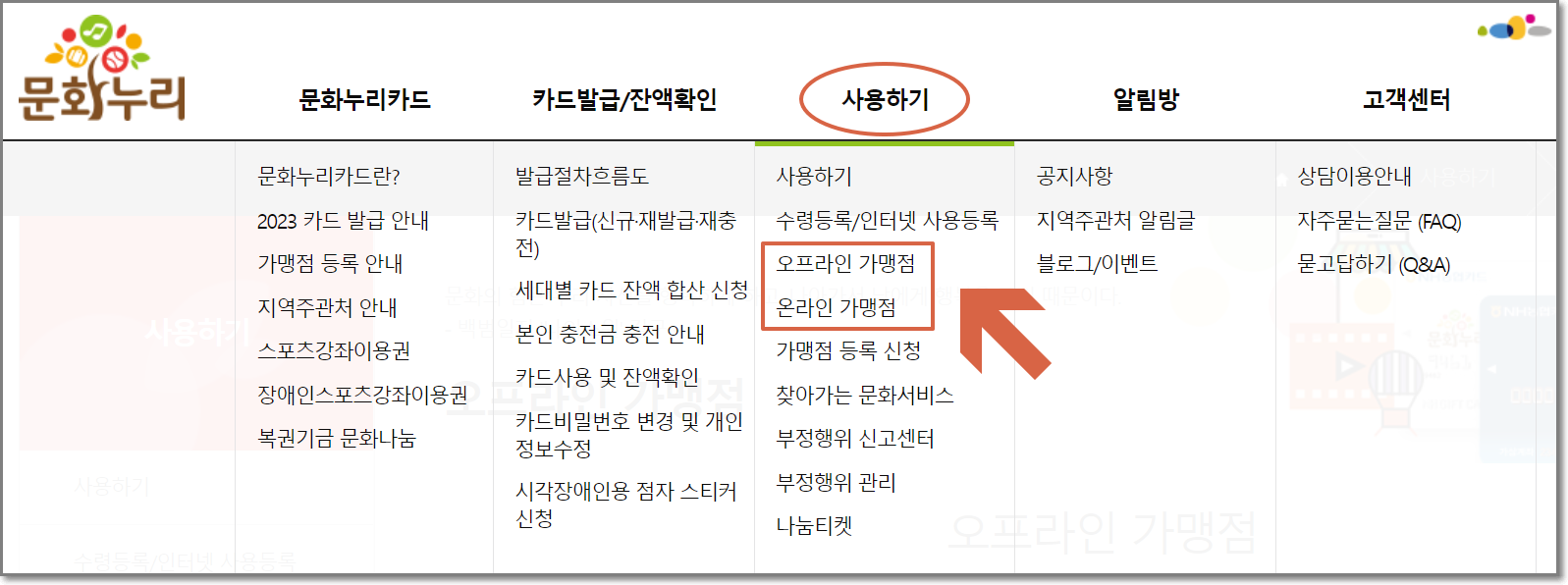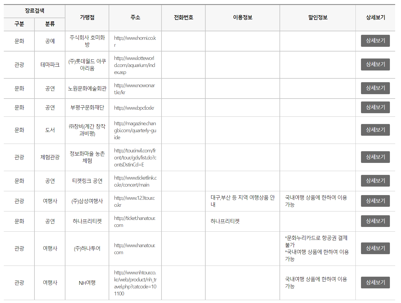 문화누리카드 누리집에서 사용처 확인이 가능합니다.